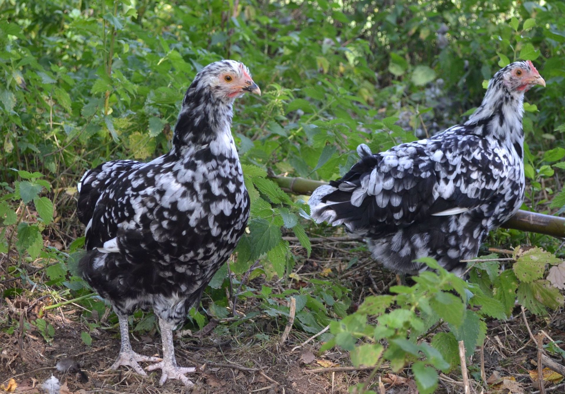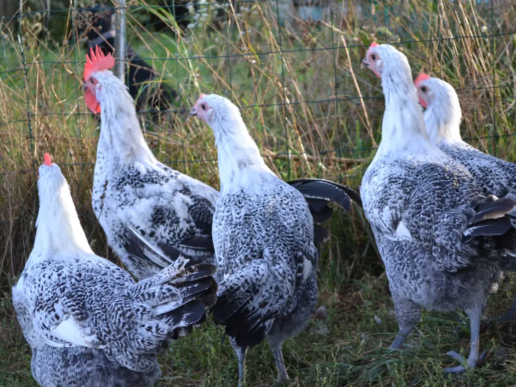 ou Bresse-Gauloise est la plus illustre des races françaises. Ces grosses poules robustes se démarquent grâce à leur plumage gris moucheté, leurs crêtes de bonne taille et leurs pattes bleues. Bien qu'elles soient indépendantes, elles sont très dociles et de bonnes pondeuses.