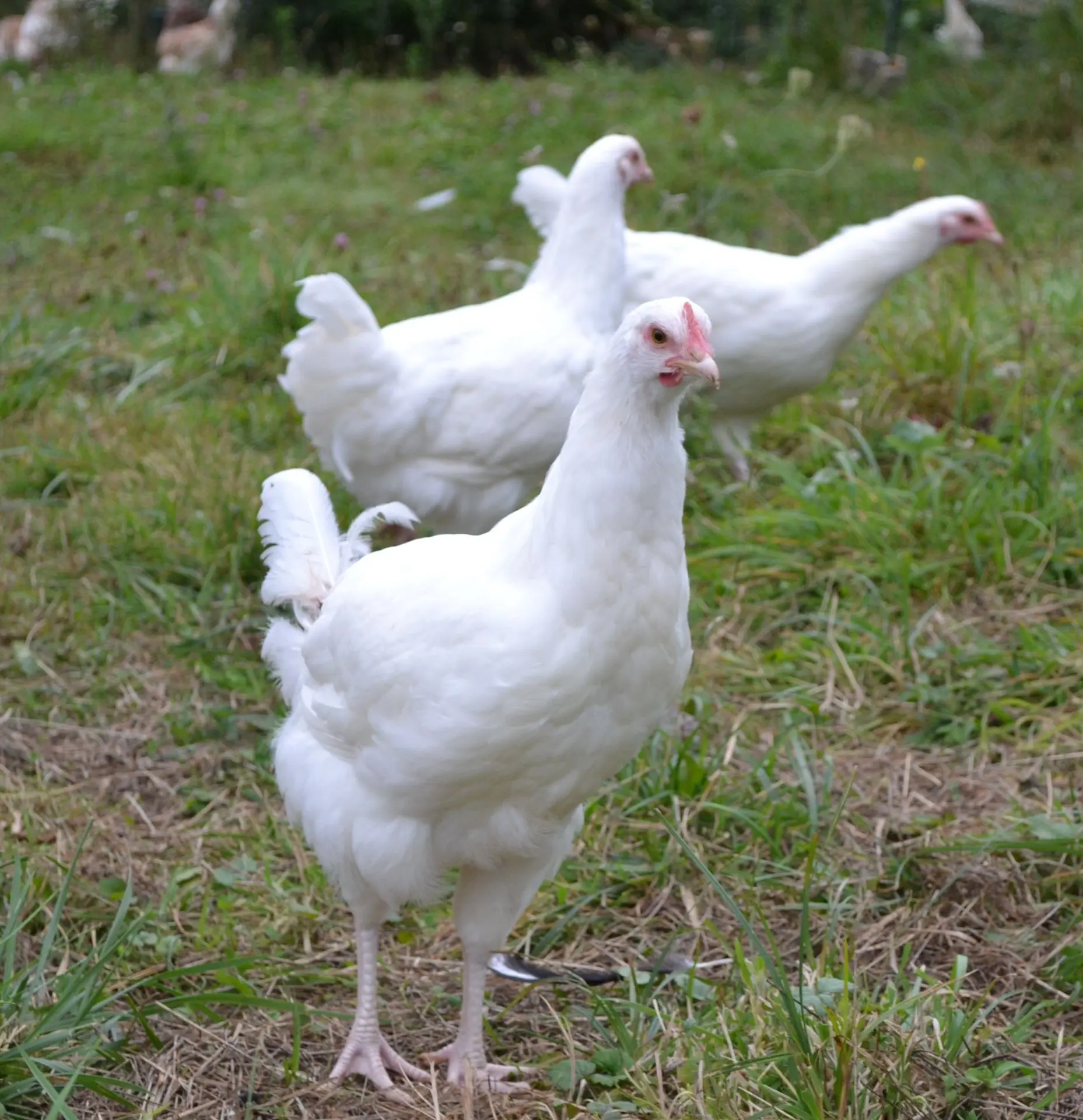 Nos poules sont élevées en plein air et peuvent se nourrir et se dégourdir les pattes dans les champs. Elles sont nourries a la main et nous veillons quotidiennement à leur bonne santé.